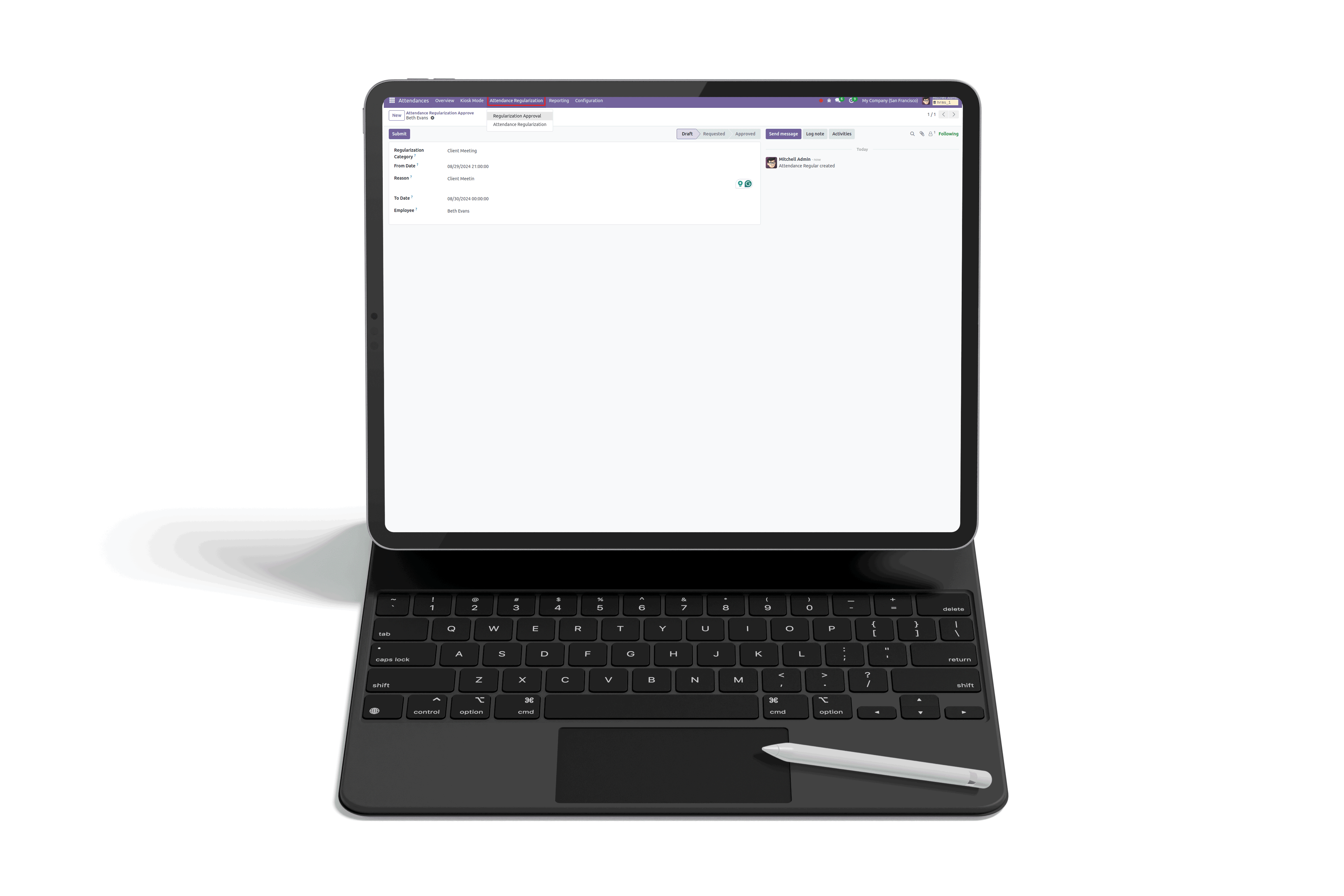 Employees can submit a request for attendance regularization through the system, which managers can review and approve based on the details of the onsite job.