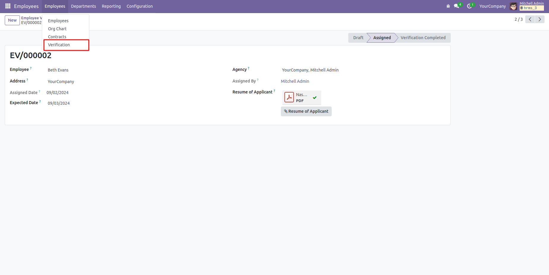 Goto Employee module and choose menu Verification. Then Fill the required fields