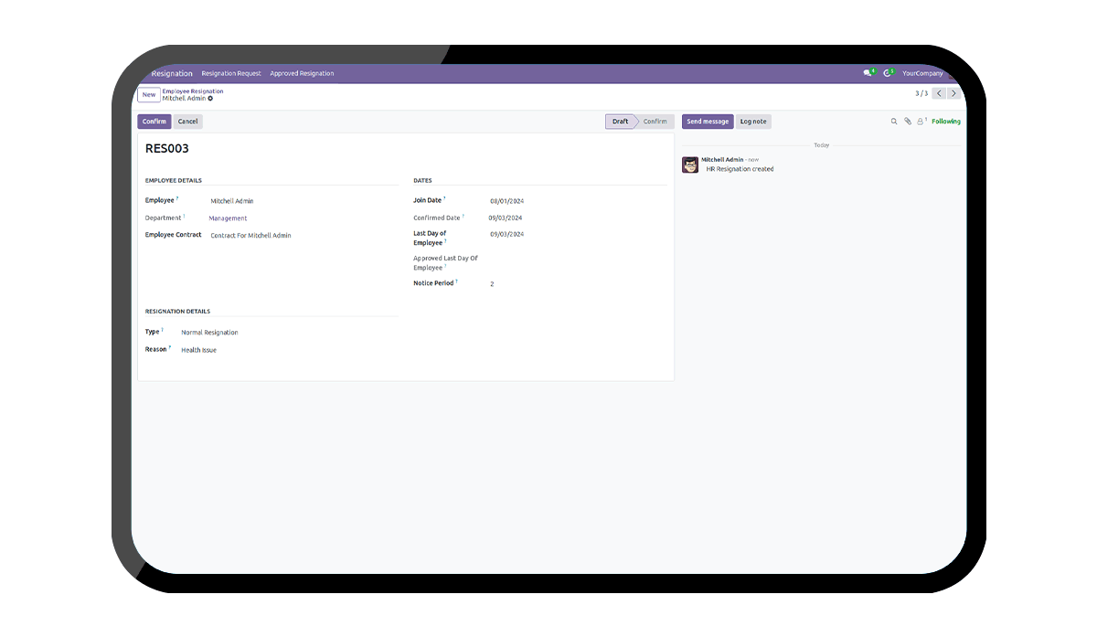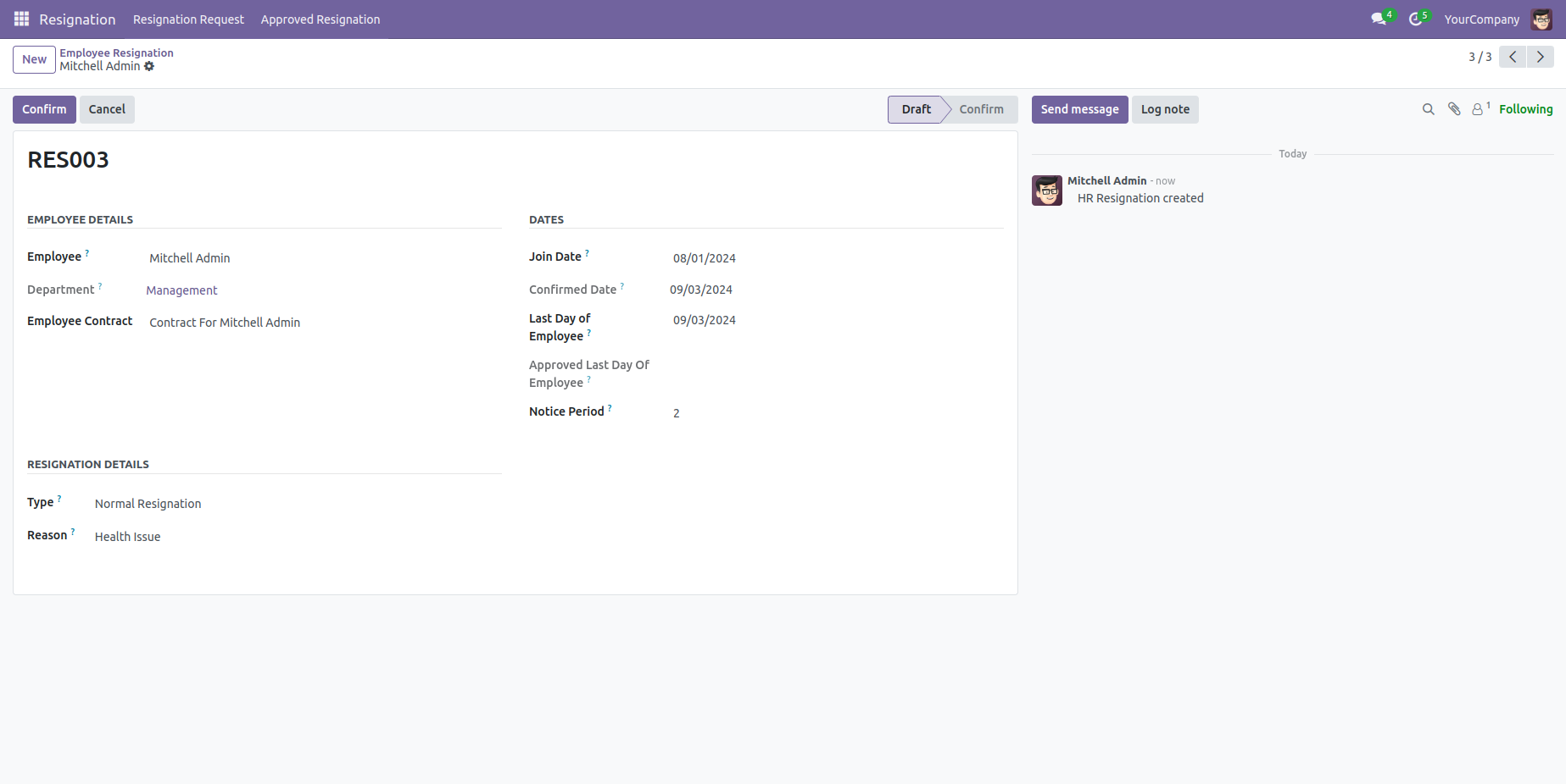 From Resignation --> Resignation Request, Employees can create their own Resignation Request.