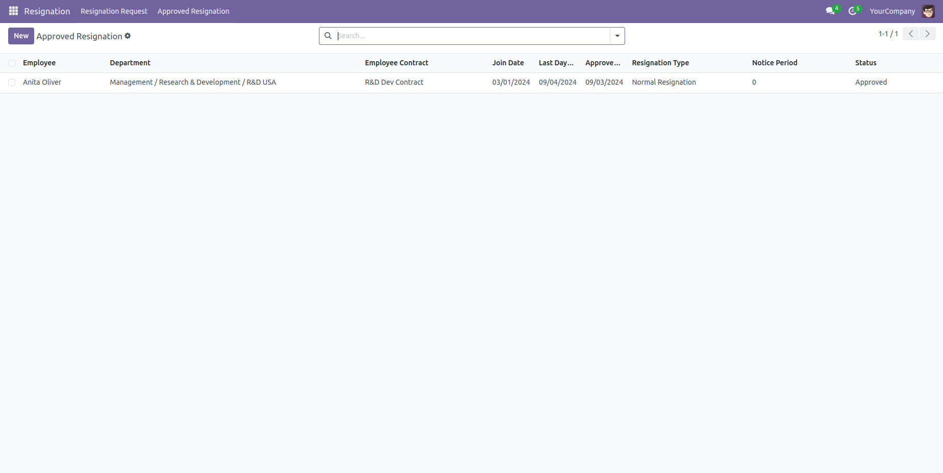 From the 'Approved Resignation' menu, able to view approved Resignation Requests separately.