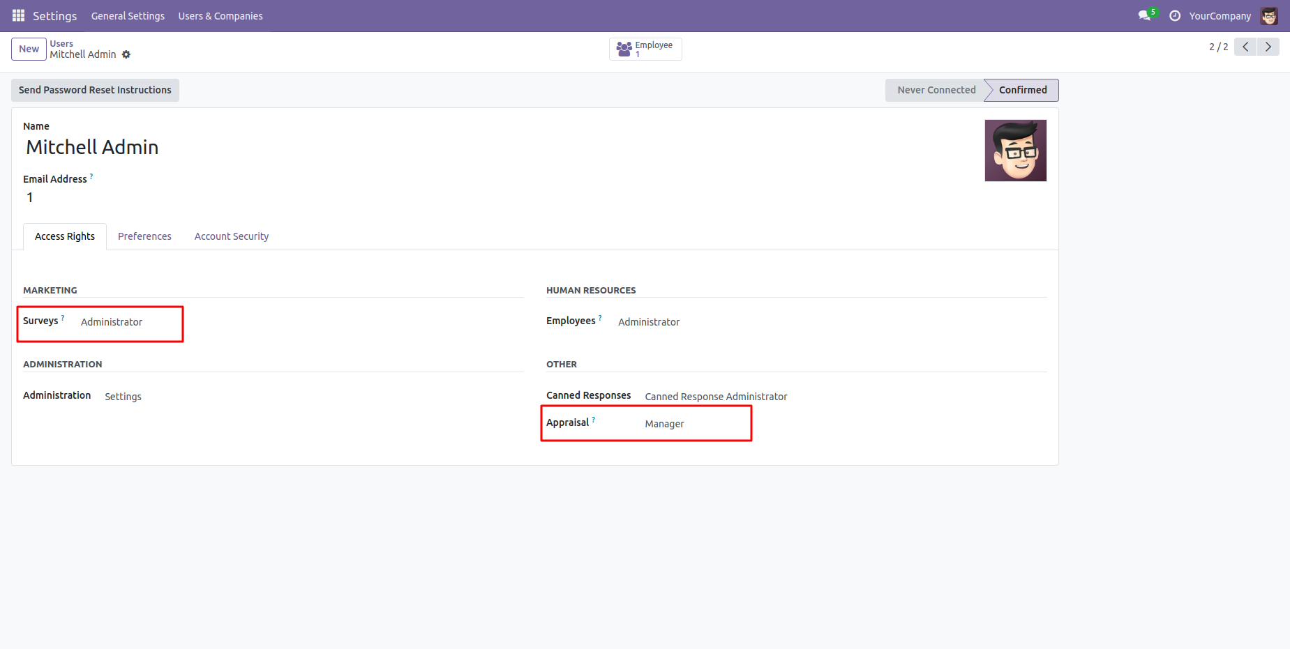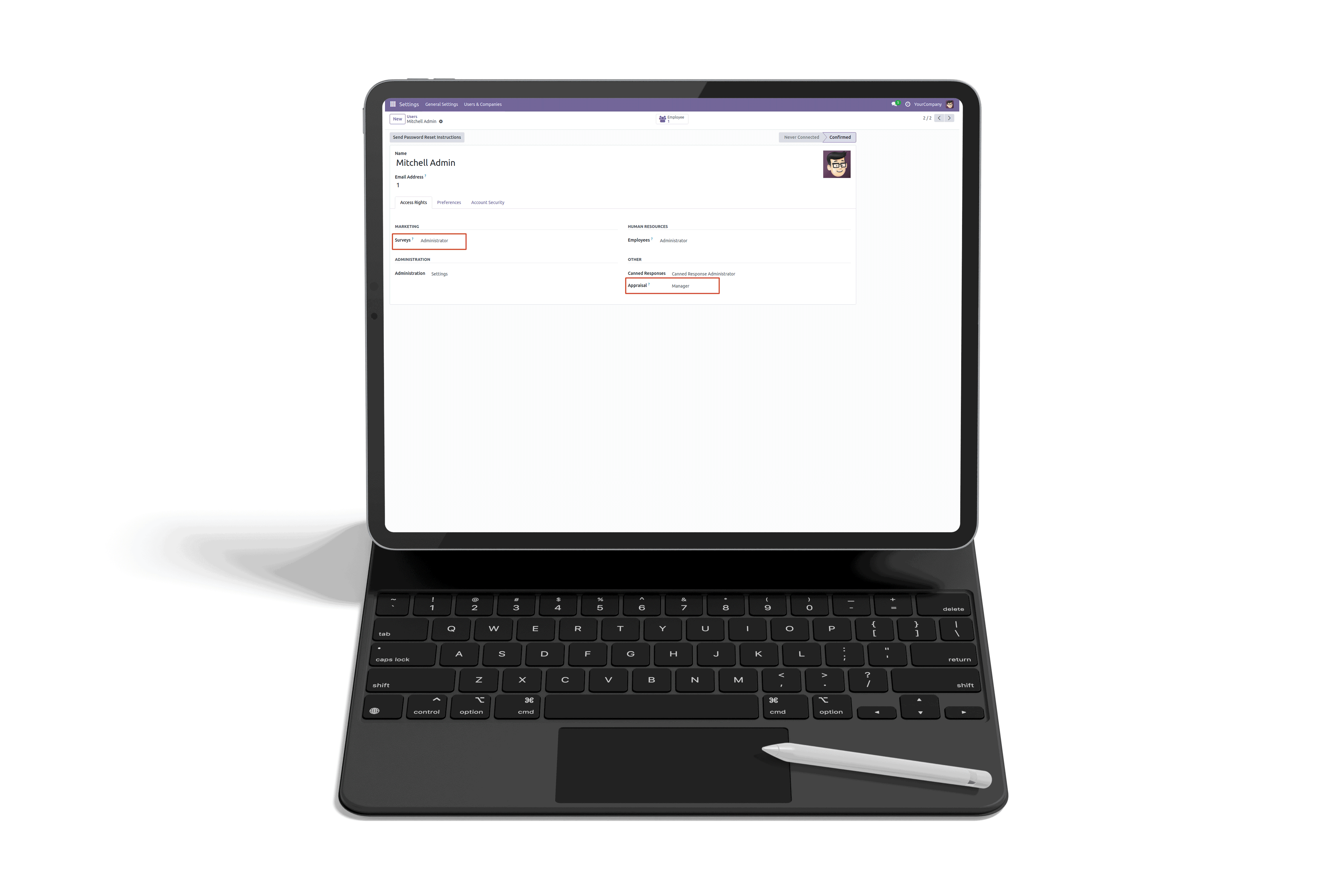 Set access rights for the employees.