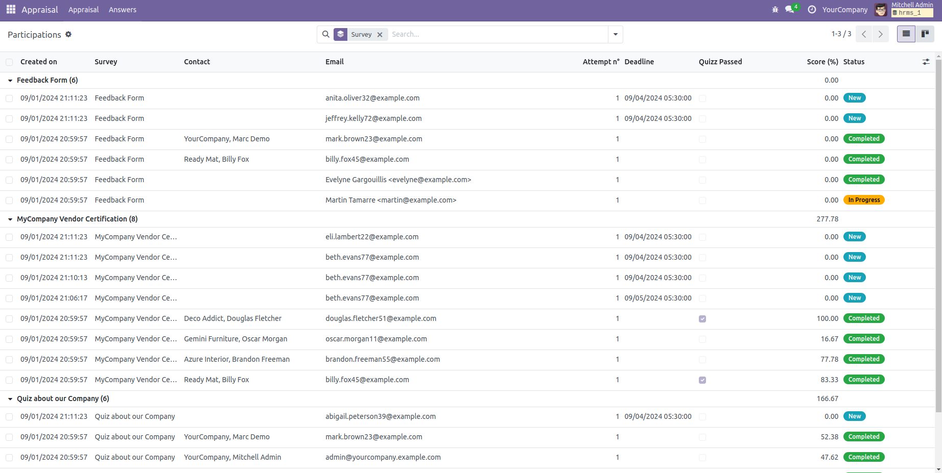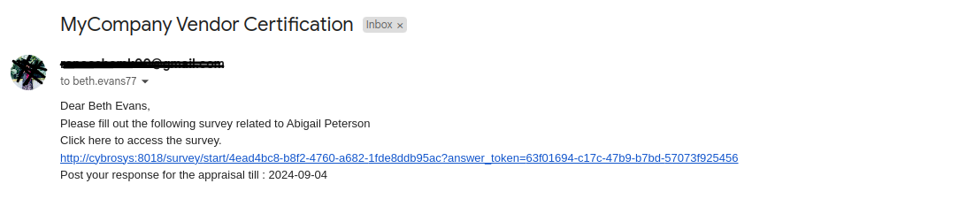 Email notification is sent to the corresponding employee including the link to participate in the survey, from this link user can participate in the survey from their own account.