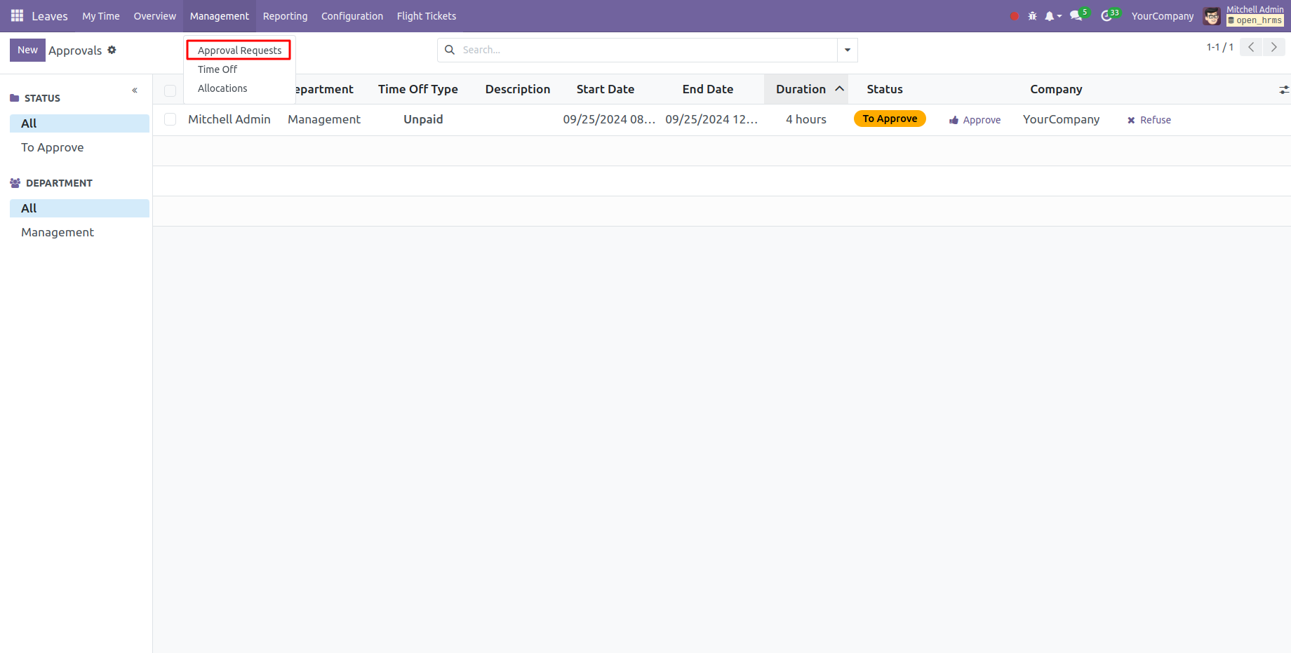 Login as any of the Time Off Validator and Navigate to Approval Requests under Management.