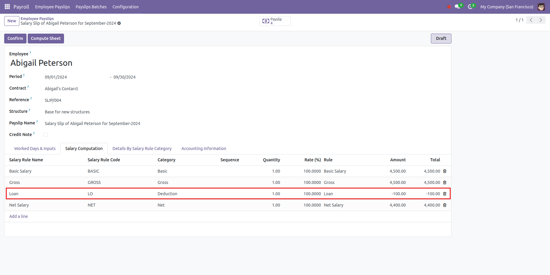 After Confirming the Payslip, the Installment Amount will be deducted from the Total Loan Amount