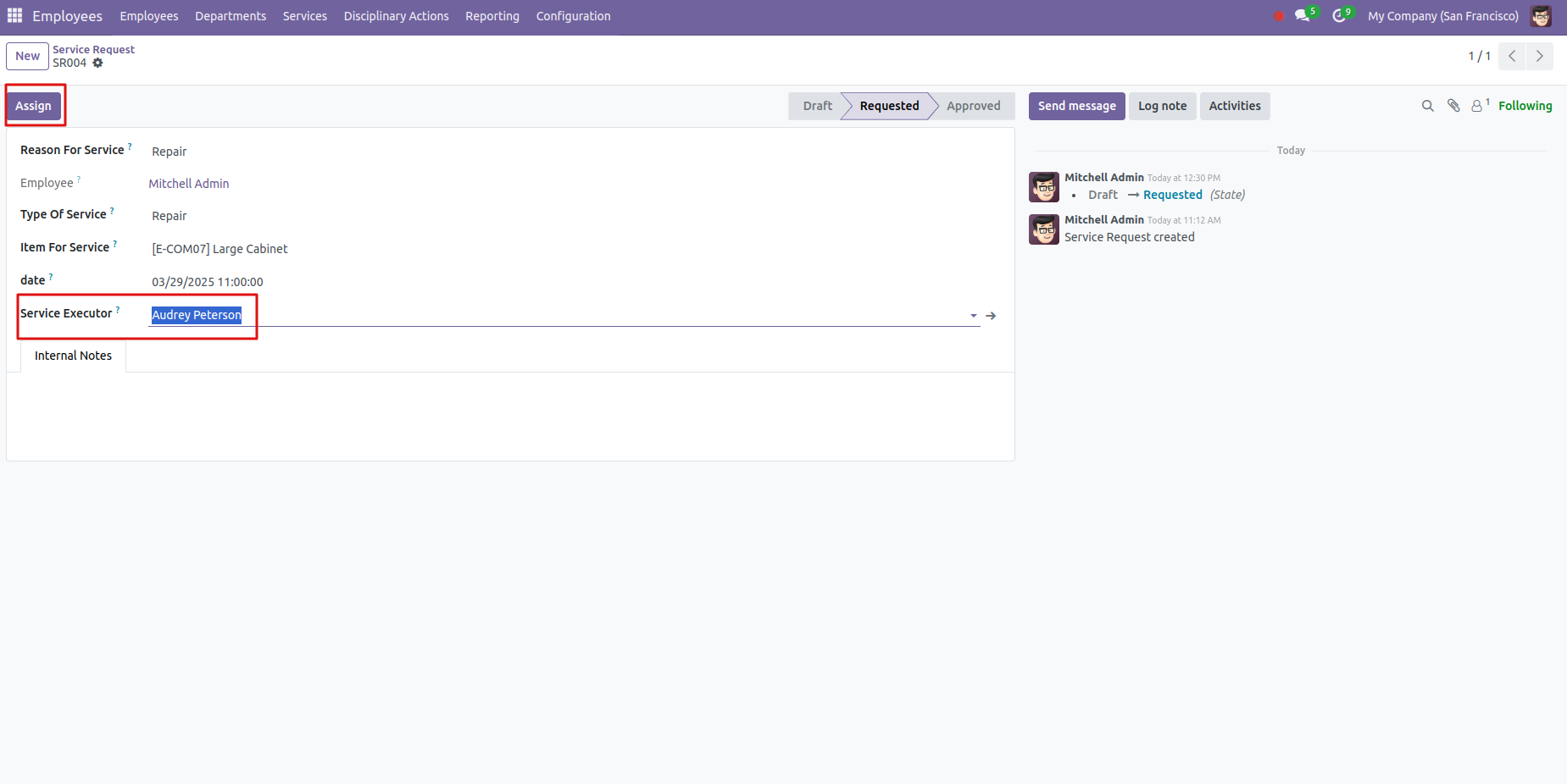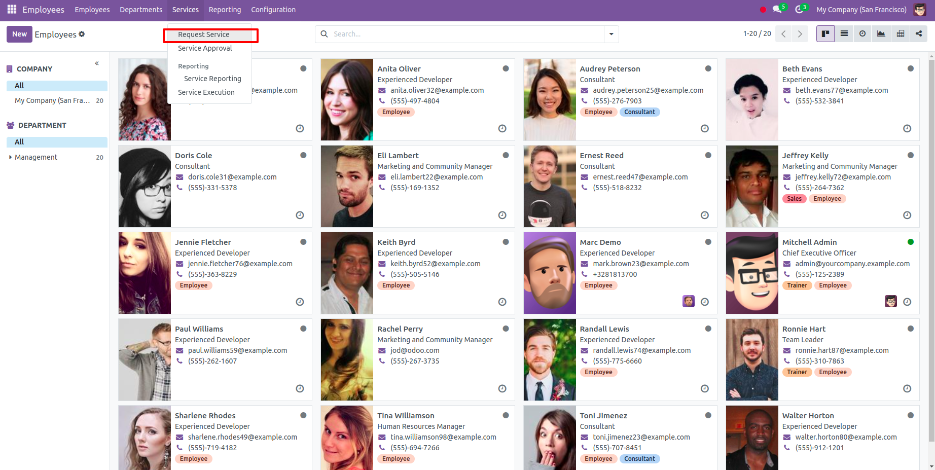 Submitted service requests can be viewed by HR personnel and relevant service executers, depending on the permissions set in the security configuration.