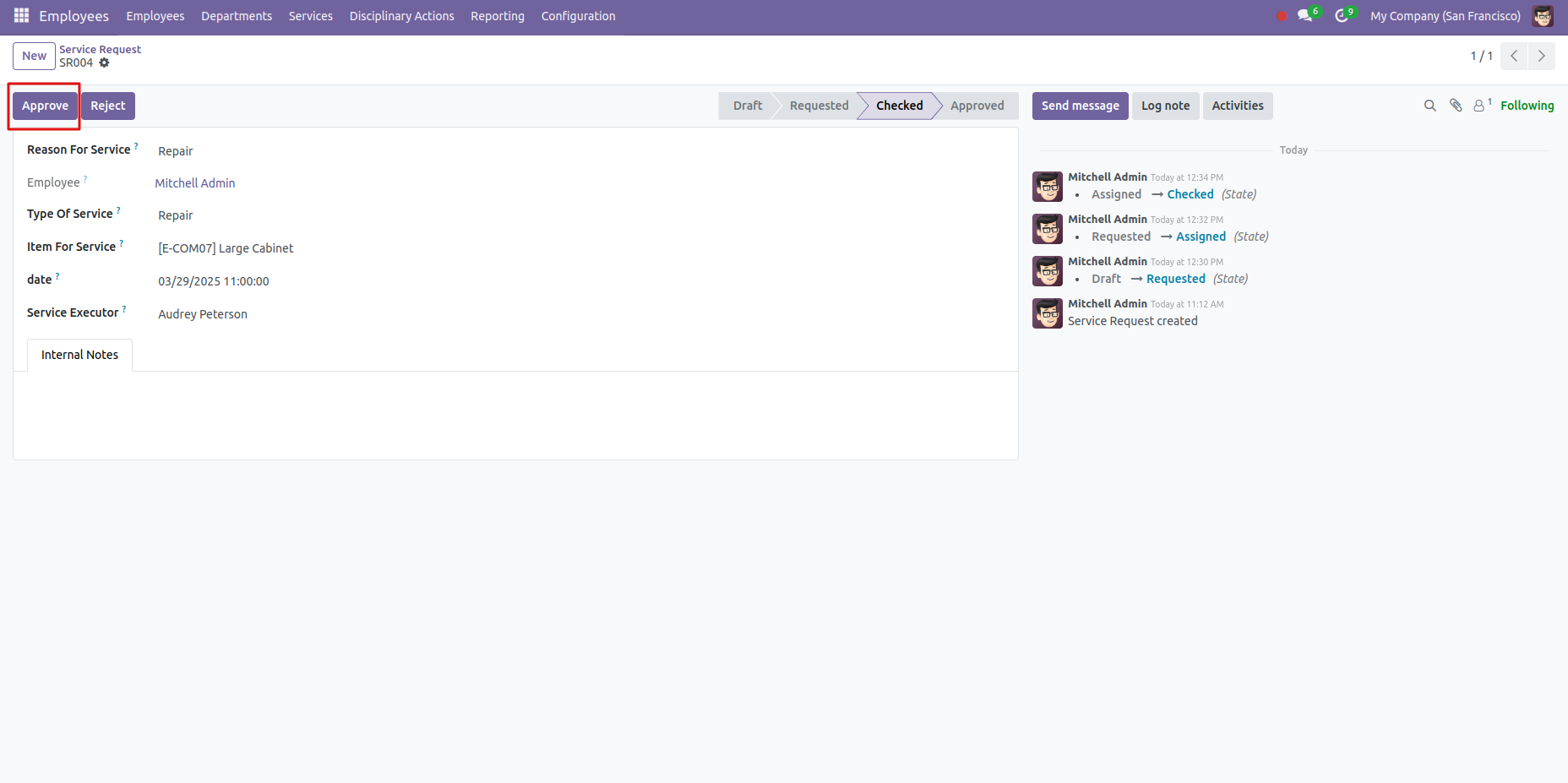 Go to Request Service menu under the Services menu. Click 'Approve' if the request is satisfied.
